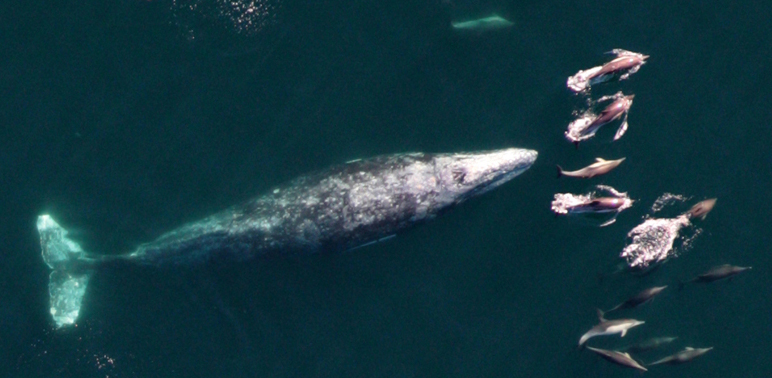 Gray Whale Calf Underwater-photo: Scot AndersonGray Whale Profile-photo: Larry CochraneGray Whale Feeds Off Kelp-photo: Larry CochraneGray Whale following Common Dolphins-photo: NMFSGray Whales in Scammons Lagoon-photo: Ken BalcombGray Whale “friendly”, Scammon’s Lagoon-photo: Marc WebberGray Whales-photo: Stan MinasianGray Whales-photo: Steve LeatherwoodTwo Gray Whales-photo: NMFS